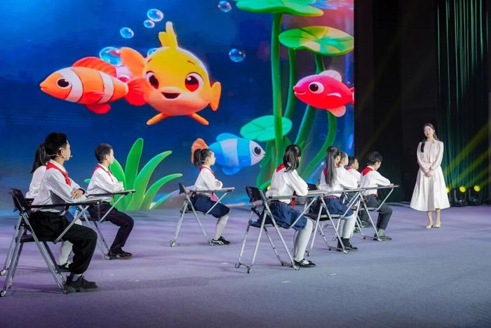 作为教育创新的重要推动力,科技手段的融入为本次活动注入了全新活力。无锡羿飞教育特别打造的全息投影舞台,以高流明激光投影机为核心,结合定制化沙幕系统,实现了对舞台剧《心壶》的沉浸式呈现。《心壶》以心灵成长为主题,通过全息技术将抽象的情感与哲思转化为具象的三维影像:流动的光影构建出虚实交织的场景,人物与虚拟元素的互动打破舞台物理边界,观众仿佛置身于故事之中,与角色共情共鸣。这种突破传统舞台形式的呈现方式,不仅提升了艺术表现力,更让教育理念的传递更加生动深刻。