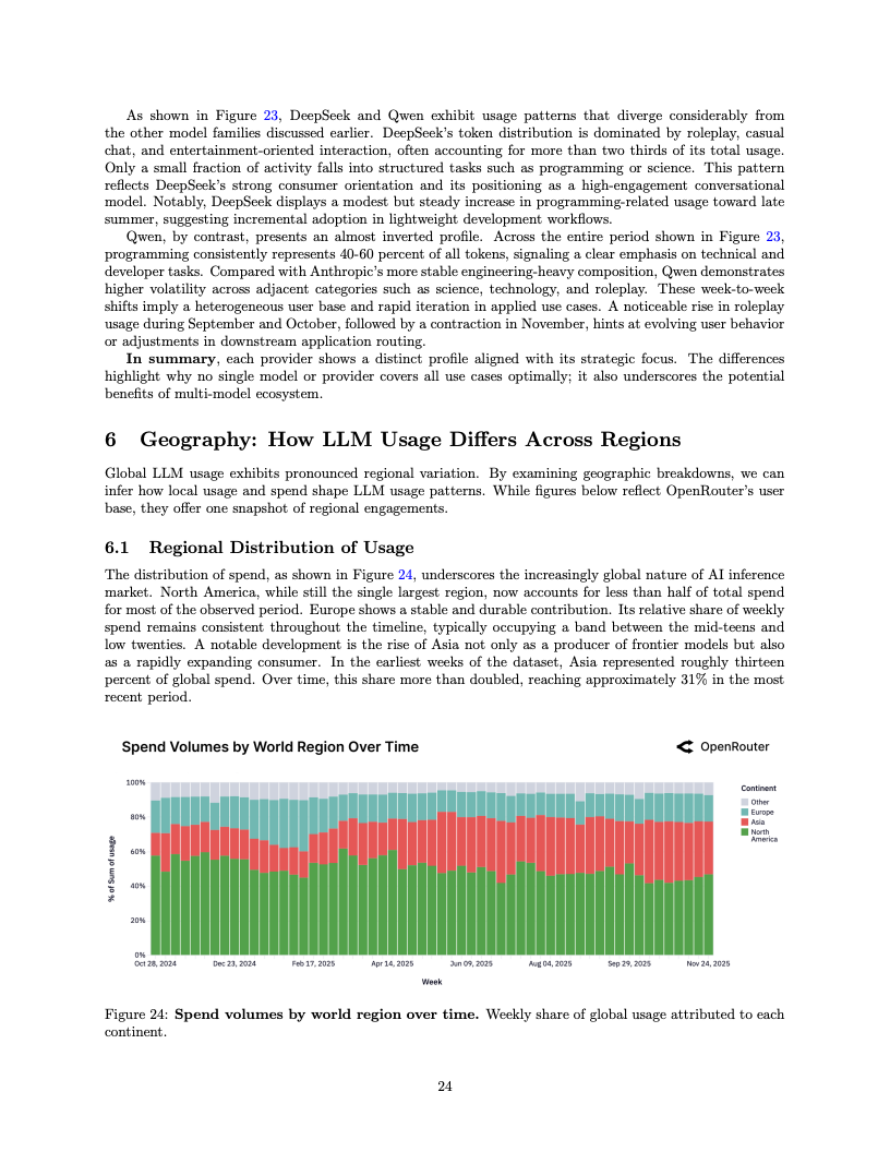 全球算力消费版图正在经历一场深刻的地理重绘,亚洲地区的影响力显著增强。数据显示,亚洲在全球推理支出中的占比已从早期的13%飙升至31%,翻了一番有余。这一增长不仅归因于该地区庞大的应用市场,更得益于中国开发者及模型厂商在全球生态中日益重要的角色。相比之下,虽然北美市场仍保持体量优势,但在全球算力多极化的趋势下,其相对权重已无可避免地被稀释。