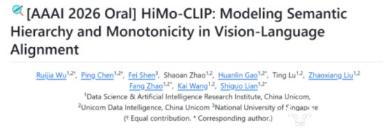 与此同时,中国联通数据科学与人工智能研究院在这一领域取得重要进展,提出全新视觉语言对齐框架HiMo-CLIP,通过创新性建模语义层级与单调性,在不修改编码器架构的前提下,实现了长文本、短文本场景的全维度性能突破。相关论文已入选国际人工智能顶会AAAI 2026 Oral(总投稿量23680篇,录用率为17.6%,其中Oral录用率仅约3.5%)。目前,量子位、CVer、AI思想会、我爱计算机视觉等媒体均对该成果进行了报道。