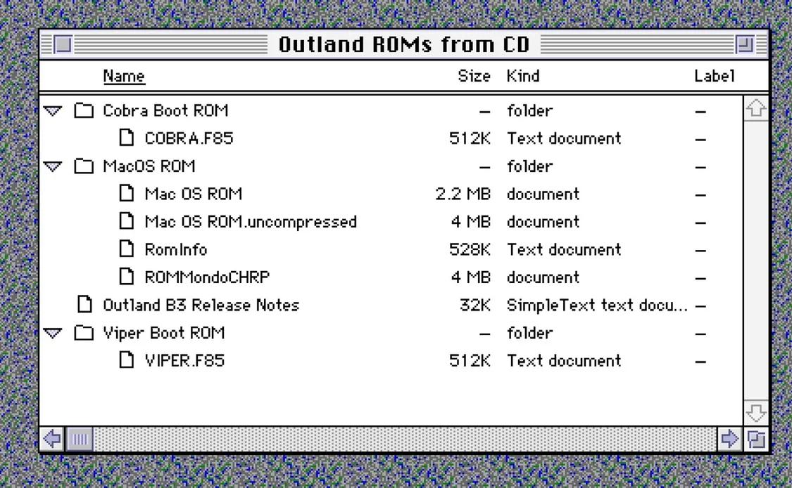 这些光盘的刻录时间集中在 1997 年 5 月至 9 月之间。除了操作系统核心文件外,光盘中还包含名为“Outland 1.1B”的 Mac OS 8 相关软件、详细的兼容性说明文档、Mac OS 授权扩展文件,以及用于适配“较新”硬件的系统启动程序(System Enabler)。