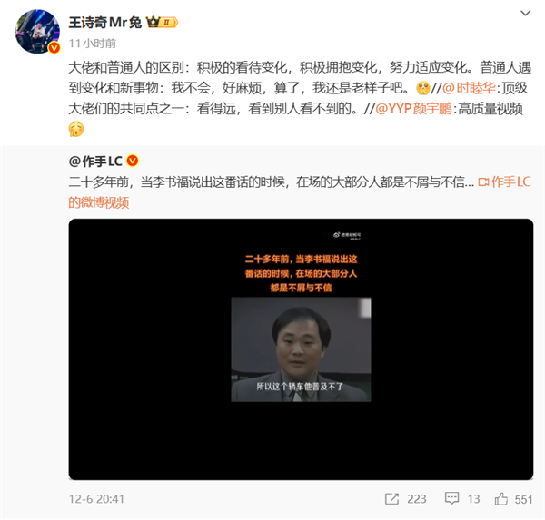 快科技12月10日消息,日前,有博主分享了一段吉利董事长李书福在20多年前的采访视频,其中对于中国汽车市场的发展变化预测,让不少博主感叹道:“大佬们的眼光果然是最顶级的”。