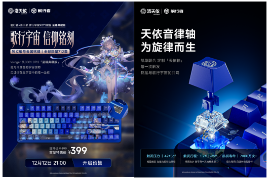 近日,国产外设领军品牌前行者(EWEADN)正式宣布,其与虚拟歌姬洛天依深度联名的前行者X洛天依X87s歌行宇宙主题机械键盘(日常售价499元,首发特惠399元)将于12月12日在各大电商平台同步开启预售。这不仅是一款新品的发售,更是技术、文化与情感三者融合的具象化表达,是一次面向未来的“情绪伙伴”邀约。