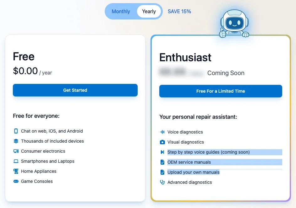 在商业模式上,FixBot 将采用“免费 + 付费”的双层级策略。普通用户可使用基础功能,而包含“分步语音指导”及“视觉 + 语音深度诊断”在内的高级功能则属于付费层级。