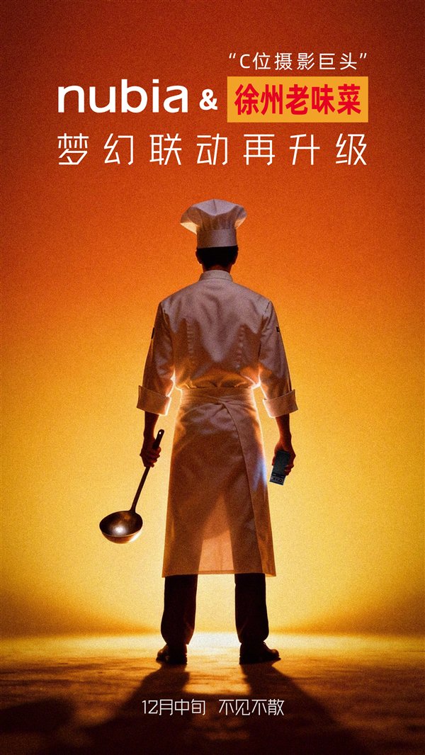 这还不够,努比亚官方今天宣布努比亚&徐州老味菜梦幻联动再升级,具体细节会在下周揭晓。预热海报中的厨师一手拿着勺子,一手拿着相机,不知道努比亚又会带来什么样的惊喜。