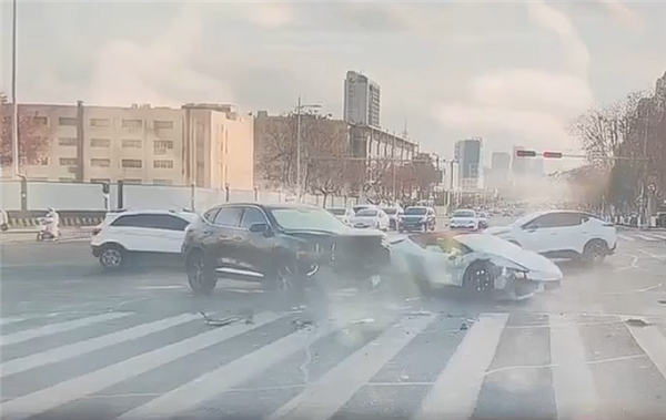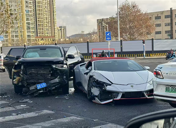 快科技12月10日消息,近日在山东青岛发生了一起交通事故,一辆未挂牌照的兰博基尼小牛闯灯被一辆正常行驶的哈弗SUV撞了个正着。