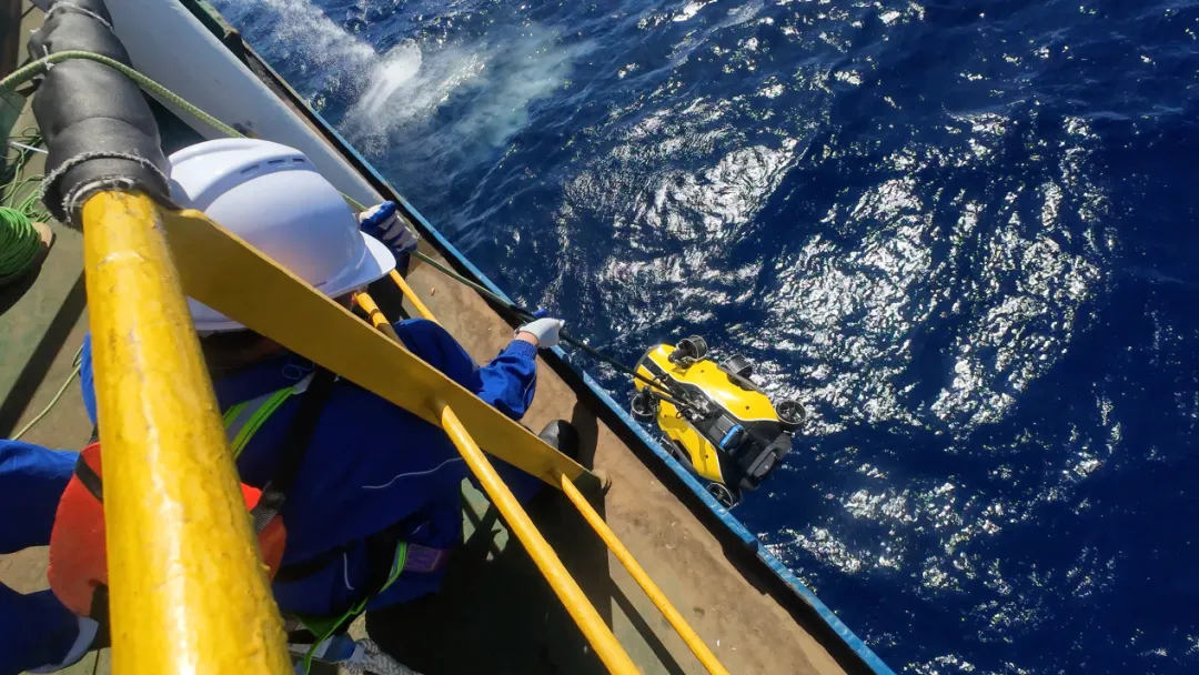 鳍源轻量化海工级水下机器人作业部署画面