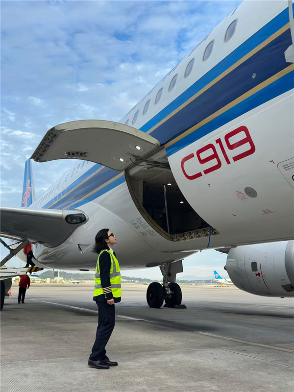 2025年,南航C919机队扩编,面向优秀飞行员选拔转型人员,于悦毫不犹豫,开始转型驾驶C919。