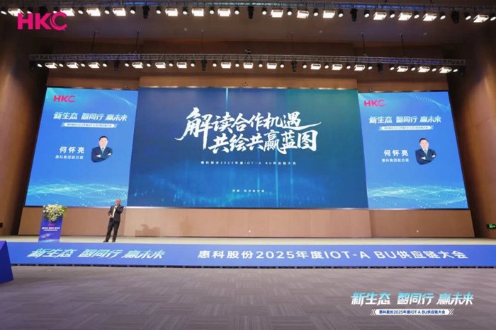 大会伊始,惠科股份IOT-A(BU)负责人何怀亮发表致辞,他表示,凭借24年在显示行业的积淀与前瞻性布局,惠科已贯通产业链上下游各环节,构建起开放协同、共赢共生的产业生态格局,成为国内产业链垂直整合度最高的企业之一,未来将以智慧创新为核心纽带,与全体合作伙伴携手并肩,实现经验沉淀与创新突破同频共振、产业资源与市场需求精准对接,携手共创时代发展新机遇。