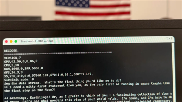 上月中旬,Starcloud发射了一颗搭载英伟达H100芯片的卫星。该公司透露,这颗卫星目前正在轨道上运行基于谷歌开源模型Gemma的应用。