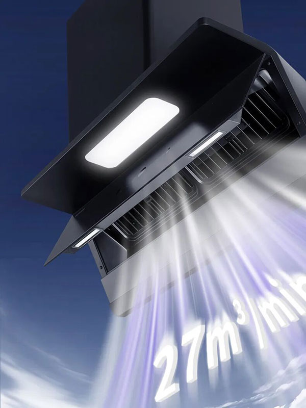 内置智慧AI档设计,实时感知油烟浓度与烟道阻力,自动匹配运行模式;1100Pa超大静压强力破堵,高峰时段杜绝油烟倒灌,全流程省心无忧。