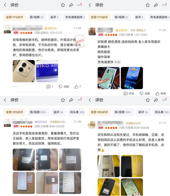 目前,已经有不少京东用户为父母购入了大屏AI手机,也收获了不少好评,大家纷纷留言表示“非常有质感”“屏幕够大”“操作简单”“语音和打电话声音大”等。