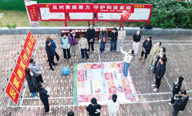 11月25日是联合国确立的“国际消除家庭暴力日”。图为11月24日,安徽省合肥市蜀山区井岗镇妇联、司法所和卫楼社区联合开展的“反对家庭暴力 守护和谐家园”主题宣传活动现场。视觉中国供图