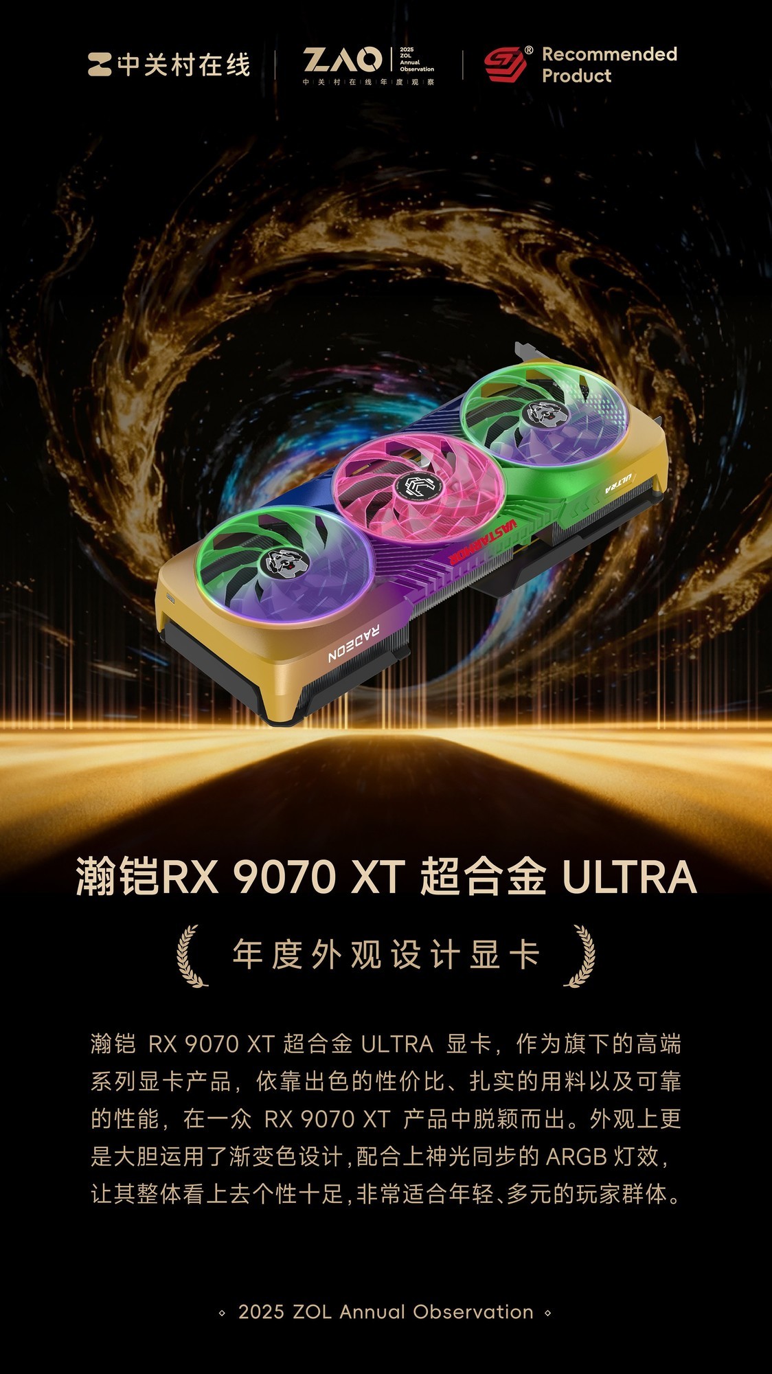 2025年度推荐产品:年度外观设计显卡 瀚铠RX 9070 XT 超合金 ULTRA