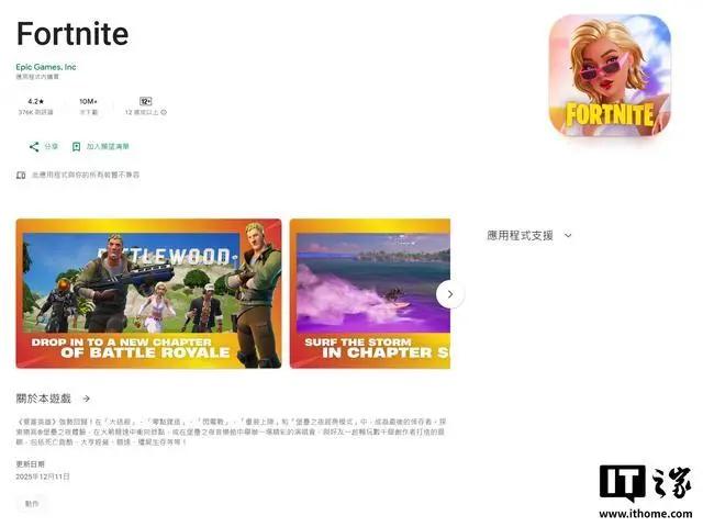 12 月 12 日消息,Epic 创始人兼 CEO Tim Sweeney 昨天宣布,《堡垒之夜》已重返美国地区的谷歌 Play 商店,意味着两家公司在经历了五年的反垄断诉讼后选择休战。