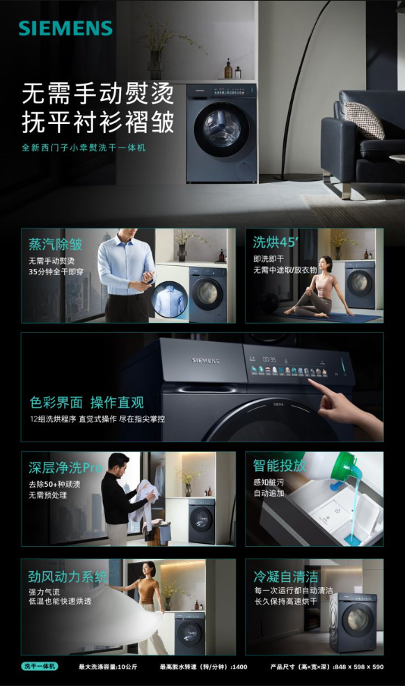从冬季衣物难干到多材质织物的细致护理,再到冬日家务管理效率的提升,西门子小幸熨洗干一体机以深层净洗、柔和快烘及智慧互联三大系统化科技,对冬季衣物洗护的核心痛点进行全面回应。该产品不仅为消费者提供更高效的季节性洗护体验,也进一步展现了西门子家电在智能家居领域的技术积累与创新能力。