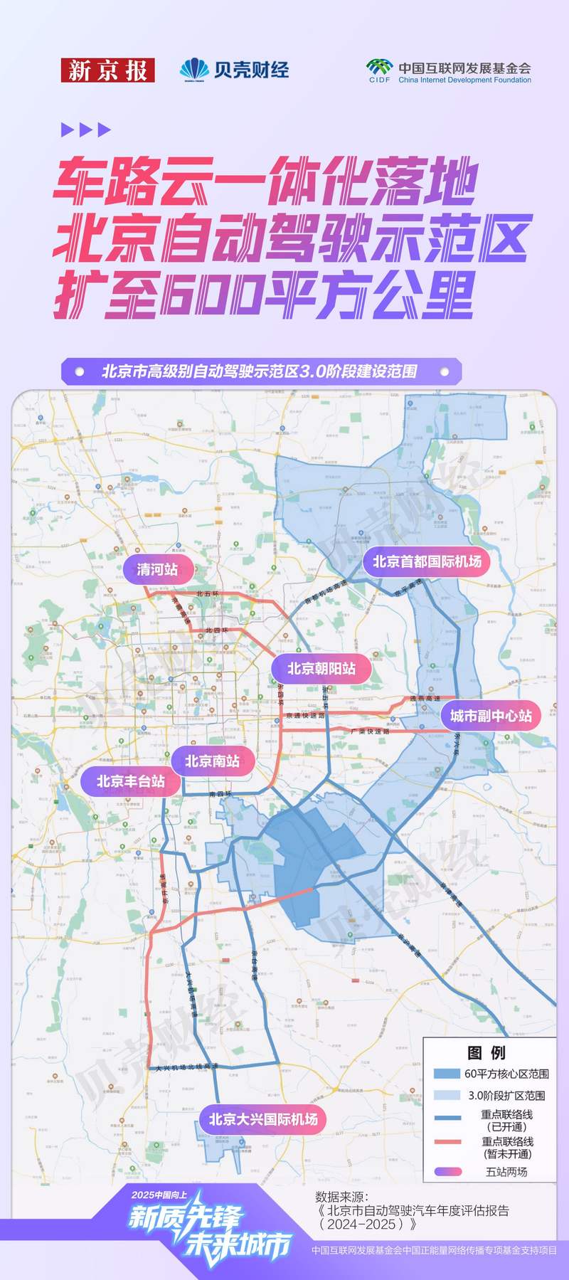 今年以来,随着国内多地加速推动无人化商业化试点,北京也在示范区3.0阶段全面深化“车路云一体化”建设。同时,示范区还构建了开放的城市级测试平台,并联合18家企业开展多链路协同验证,持续形成可复制、可推广的实践成果,为全国自动驾驶商业化落地提供更清晰的“北京方案”。