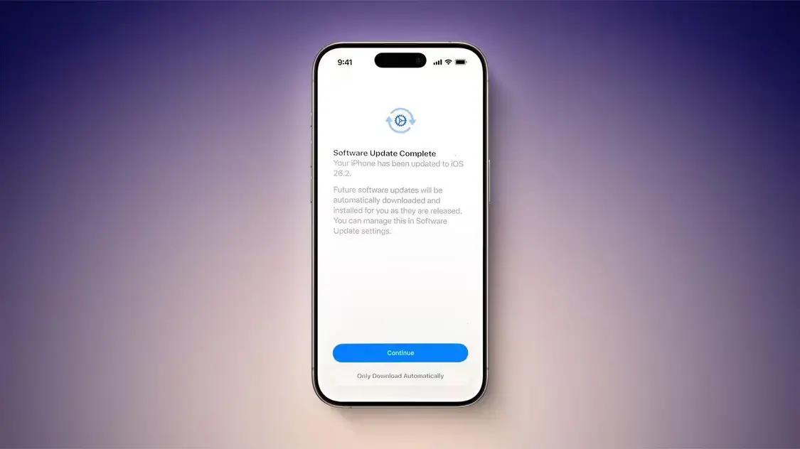 12 月 13 日消息,科技媒体 MacRumors 昨日(12 月 12 日)发布博文,报道称部分 iPhone 用户反馈,在完成苹果 iOS 26.2 正式版系统更新后的“设置引导”环节,若习惯性快速点击“继续”按钮,系统将默认开启“自动软件更新”功能(含下载与安装)。