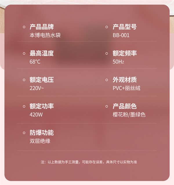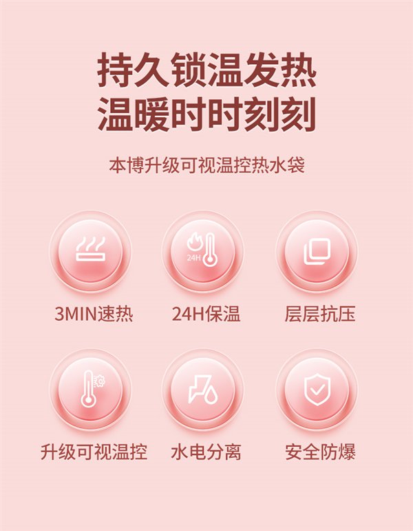 智能防爆 / 水电分离,本博双插手电热水袋日常售价 49.9 元,限时限量 30 元券,实付 19.9 元包邮。