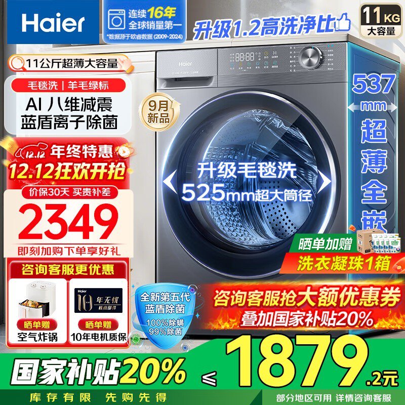 Haier超薄滚筒洗衣机直降千元疯抢