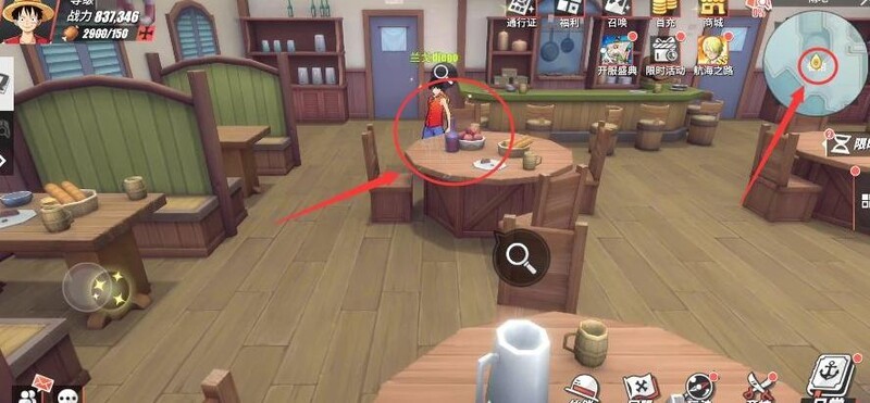 在雨宴左前方的餐馆内,进入后前往前方发光的桌子进行探索,即可获得两张普通召唤卷作为奖励。