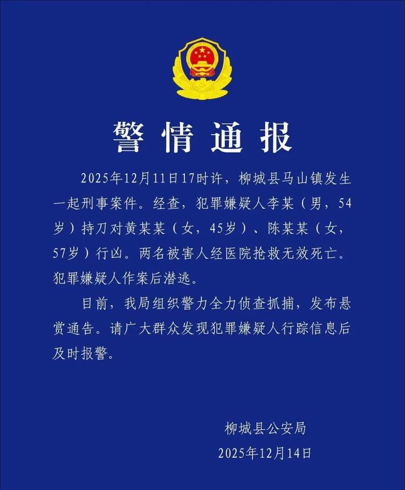 新京报讯 12月14日,广西柳州柳城县公安局发布警情通报。