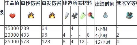 海岛奇兵中激光炮三级的伤害值及升级所需时间是多少?