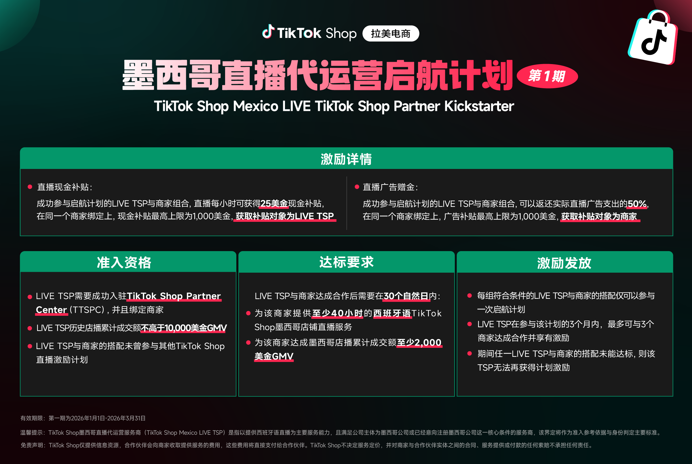 【亿邦原创】日前,TikTok Shop墨西哥站推出了“直播代运营启航计划”(TikTok Shop Mexico LIVE TikTok Shop Partner Kickstarter),大力招募符合条件的直播代运营服务商(LIVE TSP)。