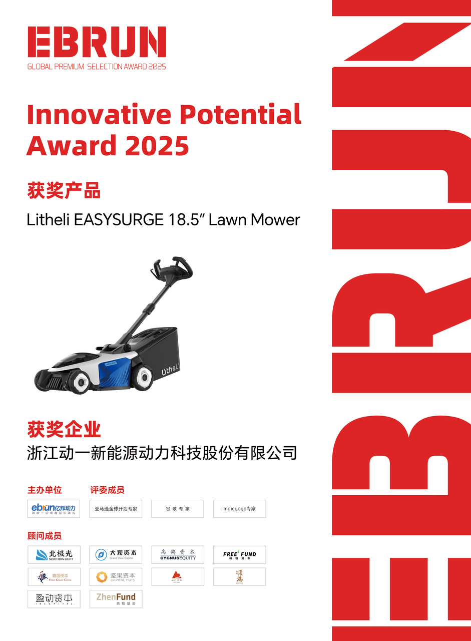 在激烈的角逐中,新能源动力工具领域的创新品牌Litheli晓来(浙江动一新能源动力科技股份有限公司)凭借其在庭院护理技术与人性化设计上的扎实表现脱颖而出。其核心产品 “Litheli EASYSURGE 18.5″Lawn Mower” 经过层层评审,成功斩获2025届重要奖项——EBRUN全球好物Innovative Potential Award 2025。