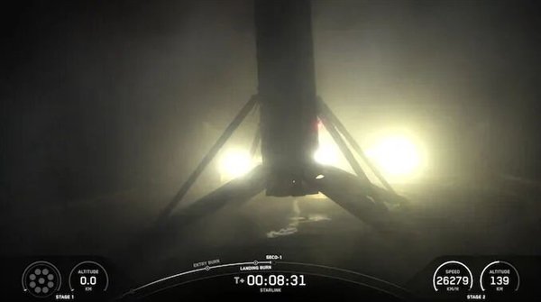 已经使用了9次的一级助推器再次顺利完成回收,成功降落在“当然我依然爱着你”(Of Course I Still Love You)无人回收船上。