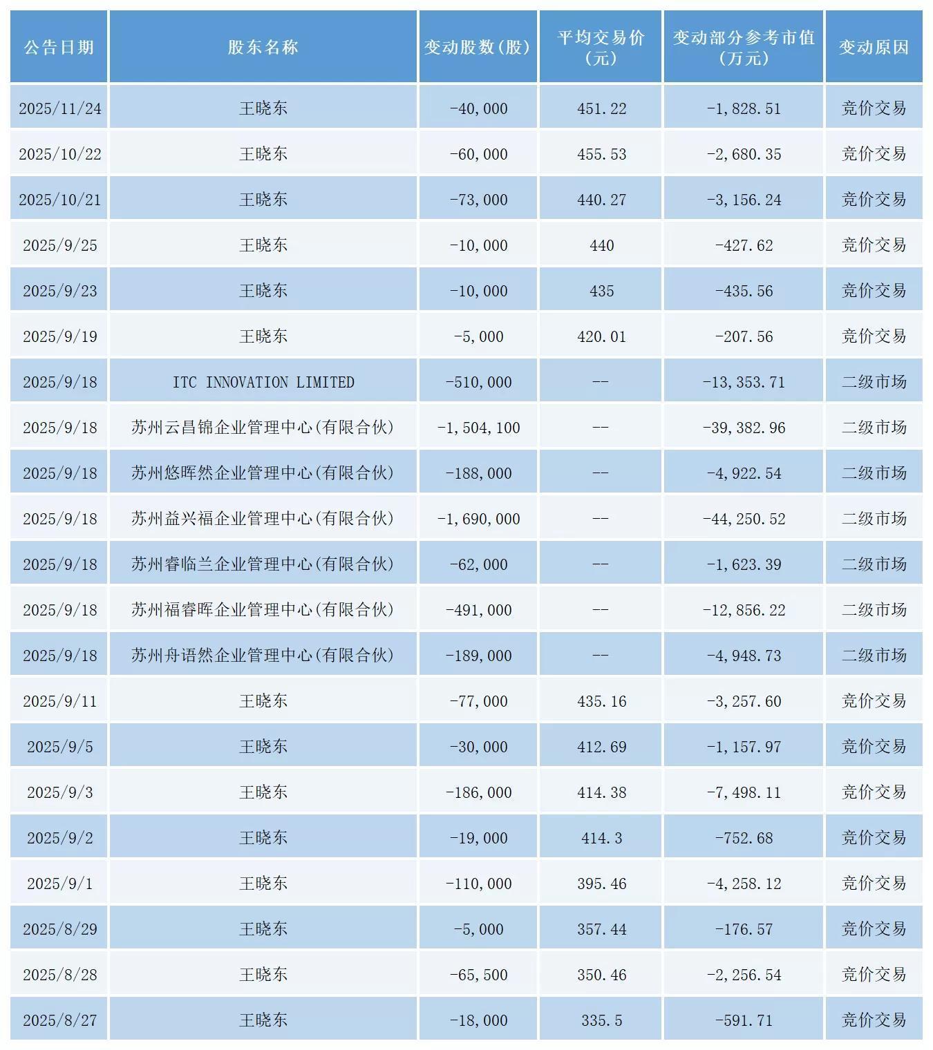 值得关注的是,今年以来,中际旭创实控人家族和高管团队已多次减持上市公司股票。