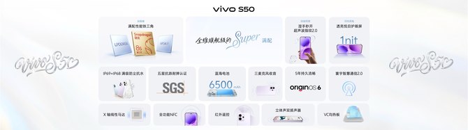 性能方面,vivo S50系列延续 S 系列“不做妥协”的思路,将旗舰级配置带给更多用户。vivo S50系列全新搭载高通骁龙8系旗舰芯片,vivo S50 Pro mini 更是首批搭载第五代骁龙 8 旗舰芯片,配合至 LPDDR5X Ultra + UFS 4.1的满配性能铁三角组合,实现了安兔兔跑分超 330 万,为重度手游用户和多任务用户提供更持久、更稳定的旗舰性能体验。