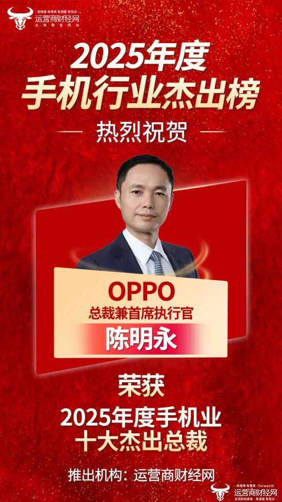 此次,OPPO 总裁兼首席执行官 陈明永荣登2025年度手机业十大杰出总裁榜,实至名归。