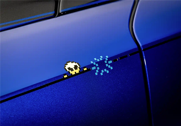 车身侧面的手绘腰线上,有89个3毫米见方的像素块构成的“俏皮外星人”图案,旁边还点缀着小巧的8位像素爆炸图案,致敬早期街机游戏中的经典外星角色。