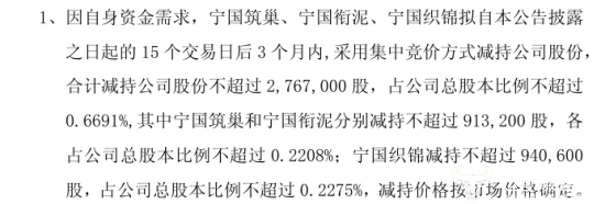 紫燕食品发布的股东减持公告显示,因自身资金需要,公司实际控制人之一致行动人宁国筑巢、宁国衔泥、宁国织锦计划采用集中竞价的方式减持公司股份,合计减持公司股份不超过276.7万股,占公司总股本的比例不超过0.6691%。