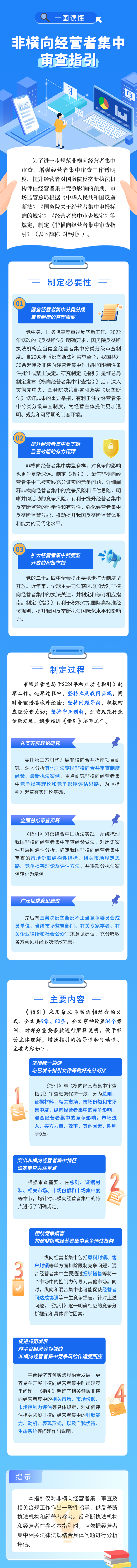 《指引》起草过程中,市场监管总局扎实开展理论研究、全面总结我国审查实践、广泛征求并充分吸收各方意见建议。《指引》保留了《横向经营者集中审查指引》的基本框架,并聚焦纵向和混合经营者集中的封锁效应等竞争问题,详细阐释具体评估思路和考察因素,帮助经营主体进一步明晰并购活动的竞争风险,积极回应企业关切。