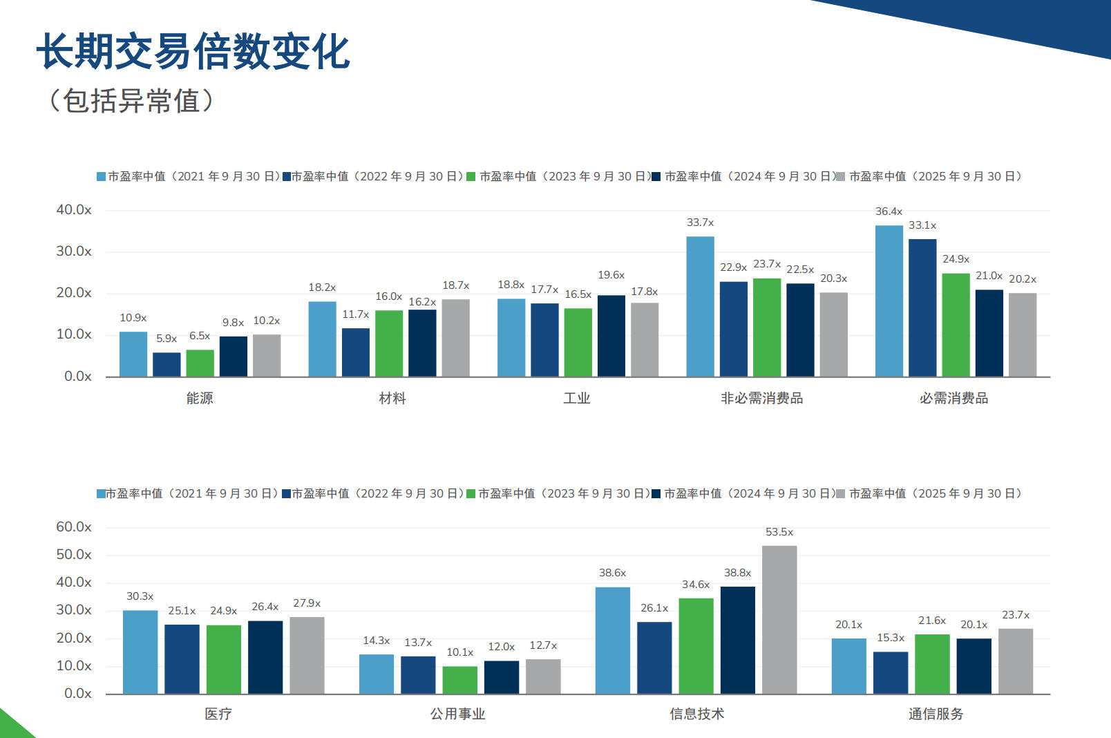 C114讯 12月16日消息(颜翊)据Kroll(德安华)最新发布的《2025年中国行业估值及交易倍数》报告显示,截至2025年9月30日,中国通信服务板块市盈率升至23.7倍,较2024年的20.1倍显著提升,达到近五年来最高水平。这一增长主要由5G-A技术的快速部署驱动。