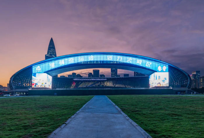 作为成长于粤港澳大湾区的光显行业龙头企业,洲明科技深度参与了20余座大型场馆的建设与升级,部署超过10000平米LED显示屏,实现赛事全场景的视听覆盖。其中包括广东省奥体中心(开幕式场馆)、深圳湾体育中心(全球最大全息屏),以及多个比赛、训练与保障场馆。