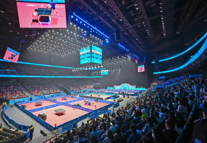 十五运乒乓球决赛场地 - 澳门银河综艺馆是澳门最大的室内综艺馆,提供世界级服务及软硬件设施,长期以来是举办重量级体育赛事、演唱会等活动的首选地。现场选用洲明科技近1000㎡ LED显示屏,包含中央斗屏、看台显示屏、会场背景屏,营造360度沉浸式、全方位的视听体验。