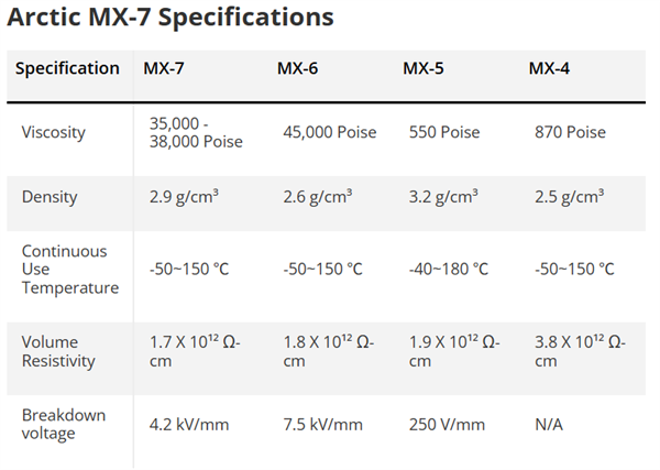 不同于其他散热产品,Artic从不公布大家最关注的导热系数,而是给出其他诸多参数: