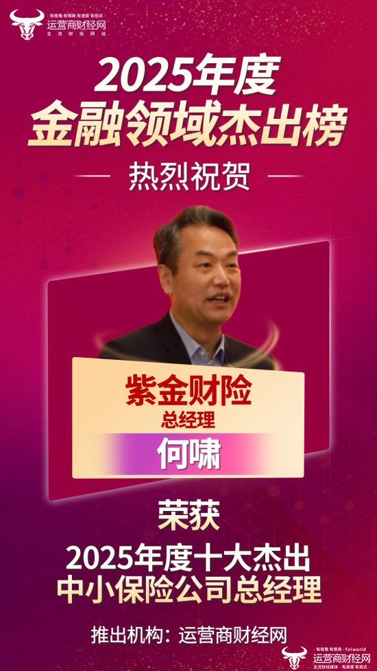 日前,国内知名财经媒体——运营商财经网独家打造的“2025年度十大杰出中小保险公司总经理榜”具体名单已经正式出炉,紫金财险总经理何啸入围该榜!