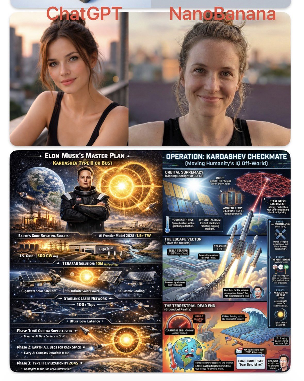 更多普遍的反馈是,ChatGPT的图片看起来比谷歌的Nano Banana Pro假得多。
