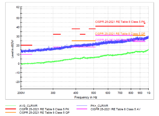NSI1611 辐射发射(RE)实测图(CISPR 25 Class 5 3m 垂直方向)