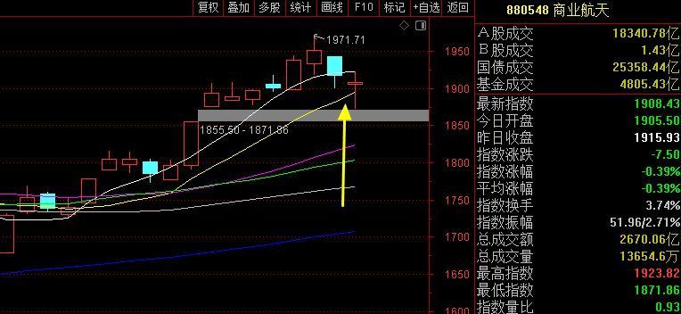 商业航天最具备赚钱效应的板块,主升浪第一次考验10日线,今天收盘没有跌破,那么明天必须大涨不然10日线失守就要小心这个板块的顶部,毕竟大盘昨天和早上的杀跌不少高位的都走出了顶部的迹象,注意风险和降低仓位,保护之前的利润果实。而且下面有个缺口未来容易下跌补掉。