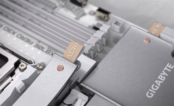 作为AERO系列的新成员,该主板延续了标志性的银白主色调,I/O装甲区域加入了两条精致的木纹装饰,不过这并非真的木头,而是经过特殊工艺处理的塑料板,但其视觉效果与触感均高度还原了实木质感。
