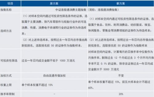 表:中证港股通消费主题指数修订方案介绍