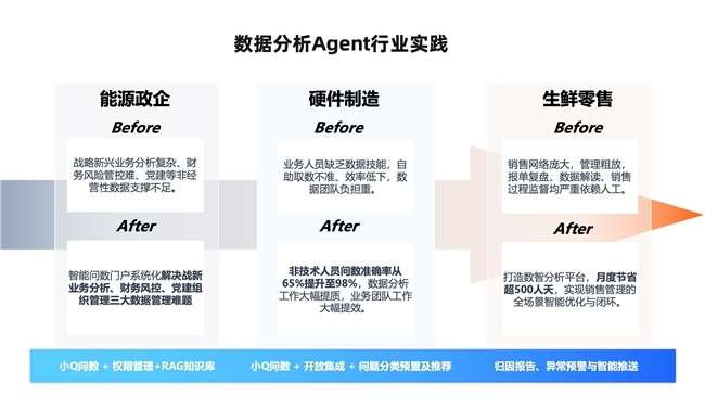 本篇白皮书中详细介绍了目前数据分析Agent在能源、制造、零售等多个行业头部企业的落地实践。