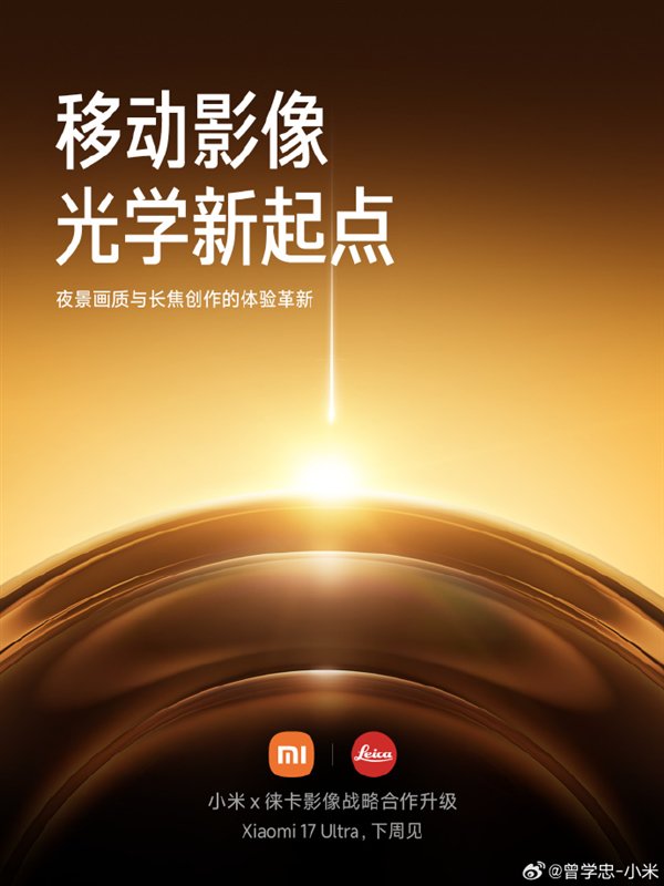 快科技12月18日消息,今天小米宣布与徕卡的合作升级,双方合作升级后的首款产品小米17 Ultra将于下周发布。