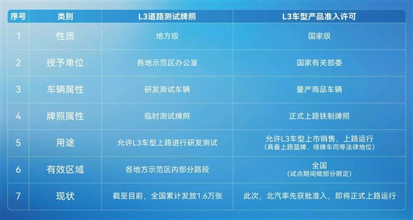 北汽称,在L3级自动驾驶的推进过程中,两种官方许可常被混淆:一是由地方相关机构发放的“道路测试牌照”,二是此次由国家有关部委发放的“产品准入许可”。