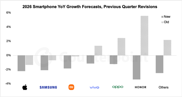 2026 年智能手机出货年增率预测与修正