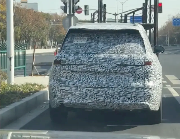 新车体量庞大,目测车长超5.2米,属于典型的全尺寸SUV,采用隐藏式门把手,翼子板上设有摄像头,可用于高阶辅助驾驶的感知。